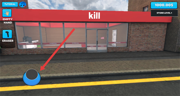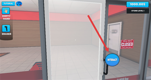 4、操控角色到超市门口是,点击店铺门口的INTERACT按钮,进入店铺内部,开启店铺经营。