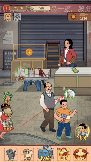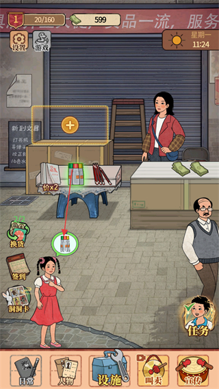 5、员工助力经营升级,可招募兼职学生负责补货,雇佣退休教师帮忙记账,不同角色分工提升店铺运转效率。