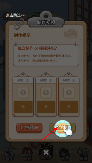3、在制作视频选择界面,点击独立制作按钮可自主开展视频创作,这是提升粉丝和播放量的关键选择,独立制作有利长期经营发展。