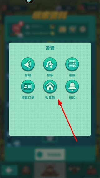 3、在设置界面中,点击礼包码选项,弹出礼包码输入框,准备输入礼包码。