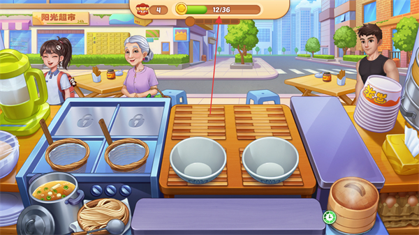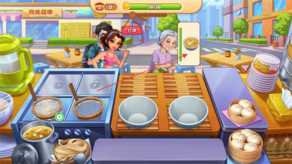 1、进入阳光超市关卡,准备制作餐食满足顾客需求。