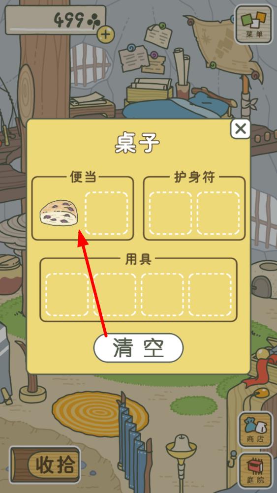 3、在界面中除了准备便当还可以点击护身符区域,可放入获取到的护身符道具,它能为青蛙的旅行带来好运和特别效果。