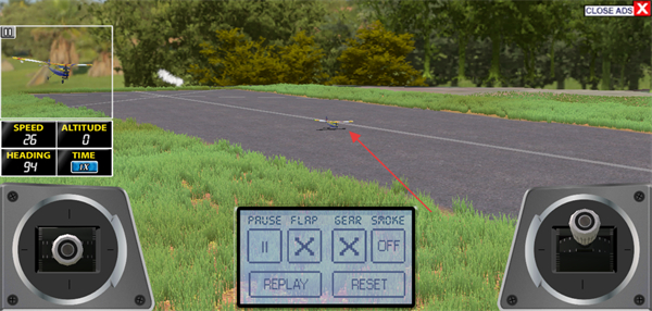 1、操控飞机在跑道上滑行,通过调整右侧控制杆控制油门,提升飞机速度,准备起飞。