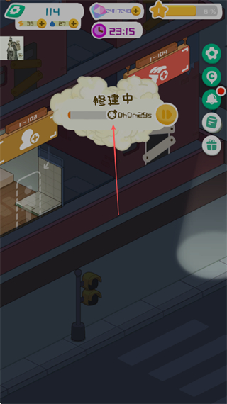 4、修建完成后,点击收租按钮收取该房间租金,持续增加收入。