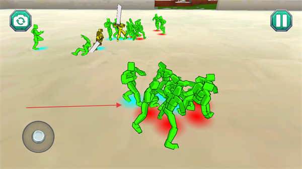 1、操控绿色兵种在战场移动,与敌方兵种混战,利用数量优势消耗敌人。