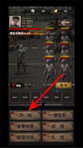 2、在战斗场景中,点击开始战斗,即可开启与丧尸的战斗。