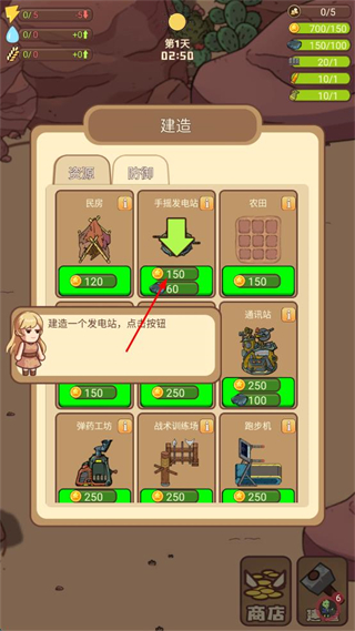 3、在建造界面中,找到“手摇发电站”并点击其对应的建造按钮。