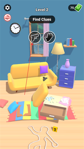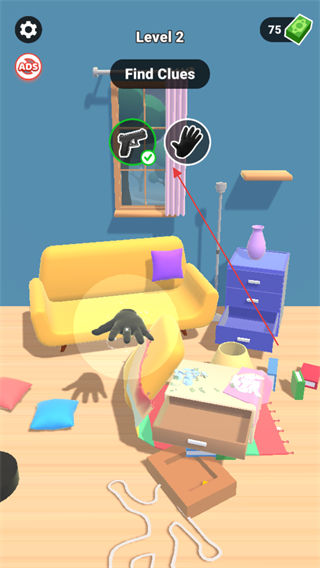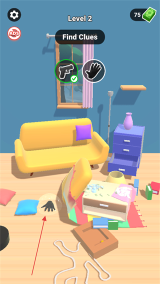 1、在Level2场景中,寻找线索,如沙发上的手枪。