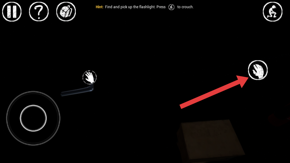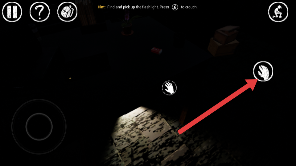 2、当看到箭头指向的交互按键手掌图标时,点击该按键,可与周围物品进行互动,尝试获取道具或触发线索。