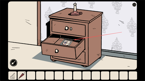 3、点击床头柜的抽屉,尝试打开它,寻找解谜所需的物品。