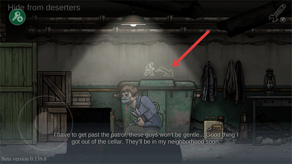 2、等待巡逻敌人移动到左侧区域后,点击垃圾桶悄悄离开。