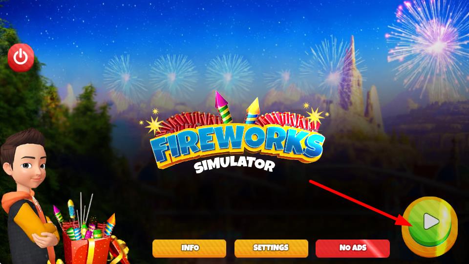 1、进入捣蛋大脚怪游戏主界面,点击右侧带有播放标识的绿色圆形按钮,即可开始游戏,开启烟花模拟之旅。