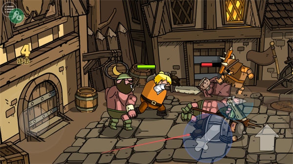 1、操控角色在城镇中与敌人战斗,利用武器和盾牌攻击、防御,击败敌人。