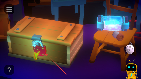 1、观察带锁宝箱,先处理锁具相关的解谜机关。