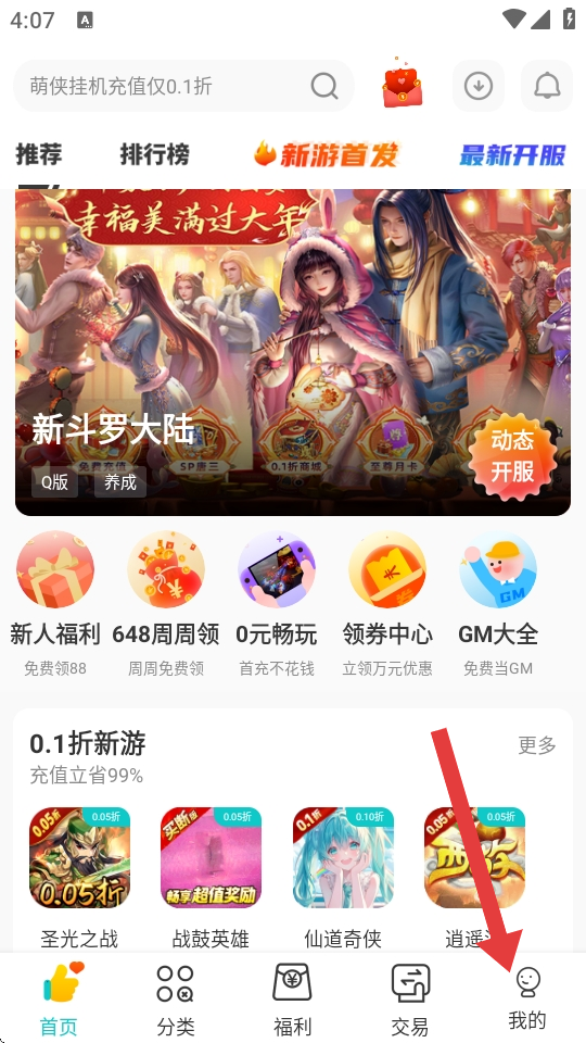 1、在游尘手游首页底部导航栏,点击我的,进入个人中心页面。