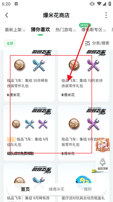 2、随后,轻松能在这里挑选到需要的虚拟商品或者实物玩偶,全部都能通过爆米花来进行兑换;