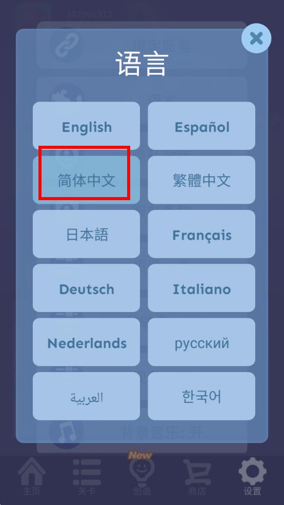 3、于语言列表中选简体中文,完成游戏语言设置。
