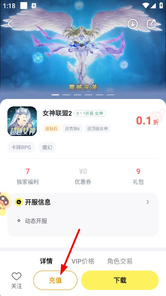 3、点击感兴趣游戏进入详情页,在下方找到充值按钮,查看是否有关于申请折扣号的相关提示或活动,按指引操作申请。