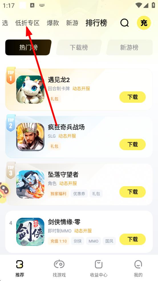 2、在低折专区页面中,浏览带有折扣标识如0.1折的游戏,找到感兴趣的游戏。