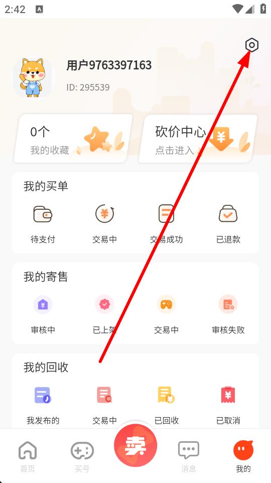 2、进入我的界面后,点击右上角的设置图标。