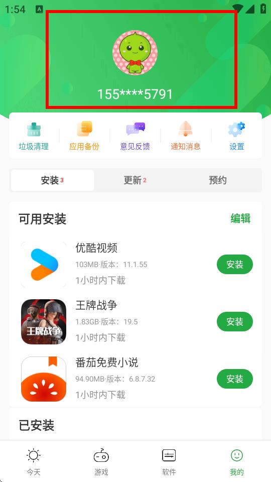 1、打开豌豆荚APP,点击底部导航栏中的我的选项进入个人页面。