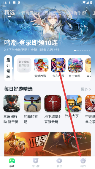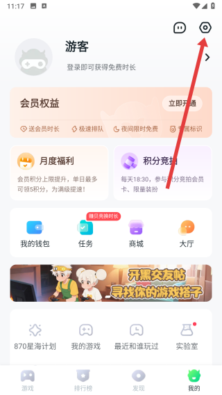 1、可以在870游戏app首页中,点击下方我的按钮,进入我的页面。