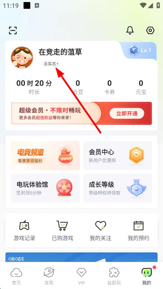 1、打开咪咕快游应用,点击底部导航栏中的我的,进入个人页面。