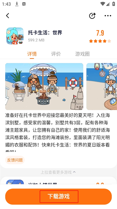 4、进入后将会看到游戏的介绍、详情、评价和游戏圈等信息,点击下方的【下载游戏】即可高速下载游玩啦。
