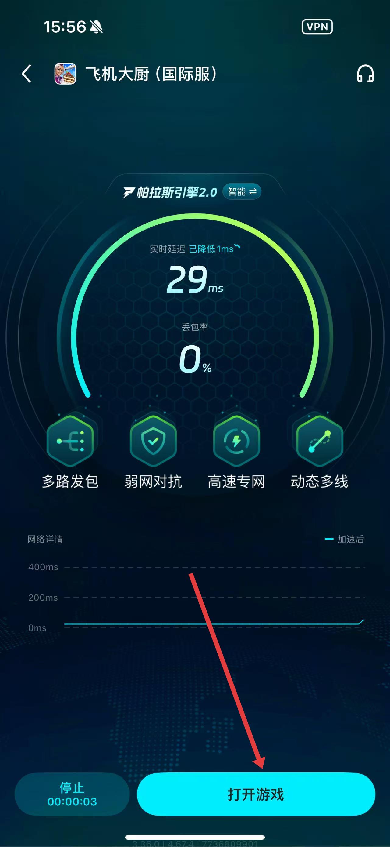 3、加速完成后,点打开游戏在加速状态下启动游戏。