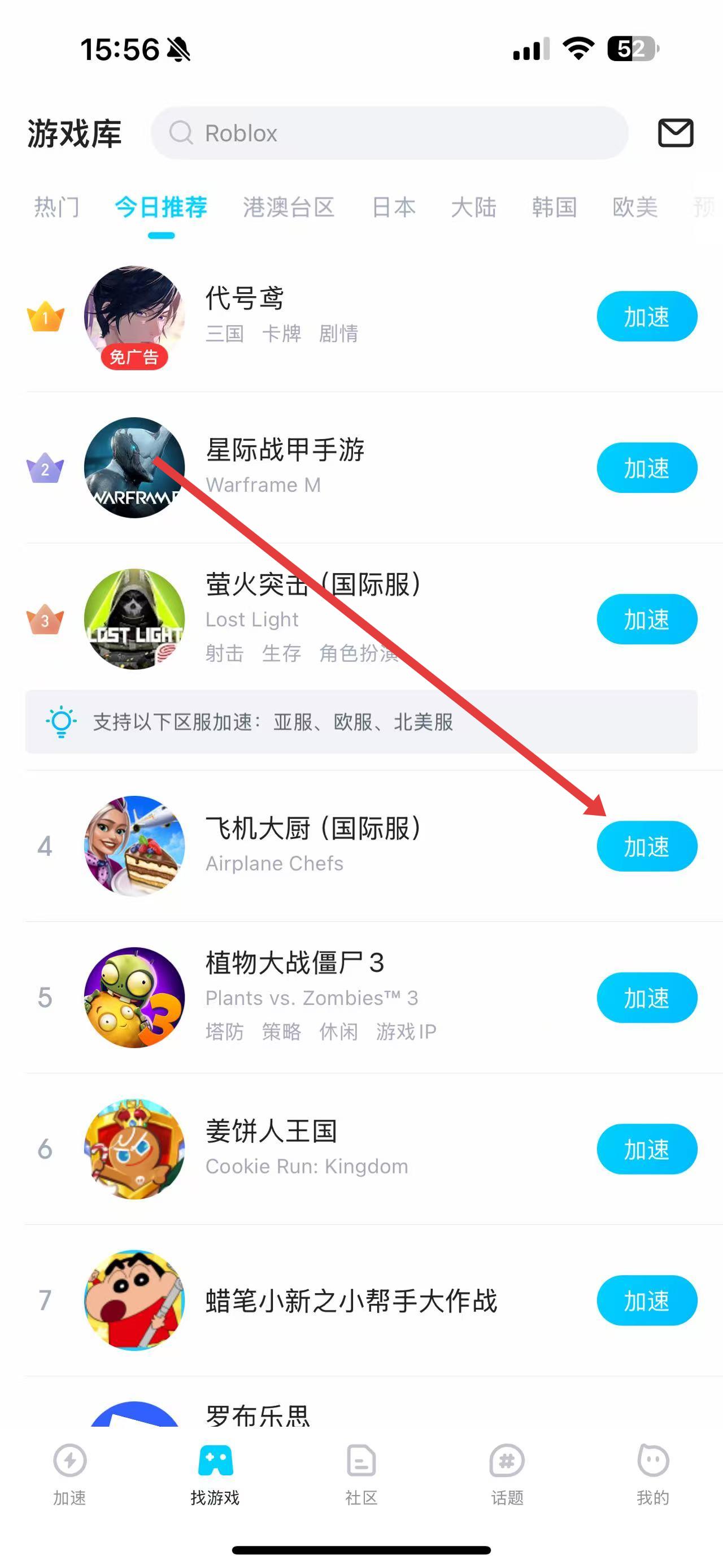 2、在游戏库找想加速的游戏,点右侧加速启动加速。