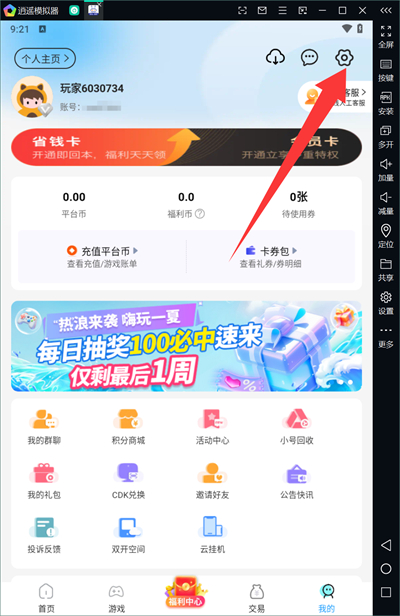 2、点击后进入个人空间界面,然后点击右上角的齿轮按钮进入设置功能界面;
