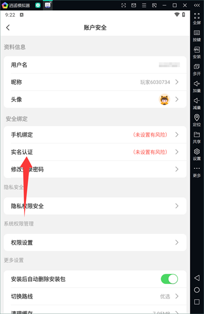 3、进入账户安全功能界面后,找到其中的【实名认证】选项;