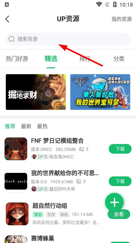 3、在UP资源页面上方的搜索栏中,输入想要查找的资源名称,即可搜索相关游戏资源。