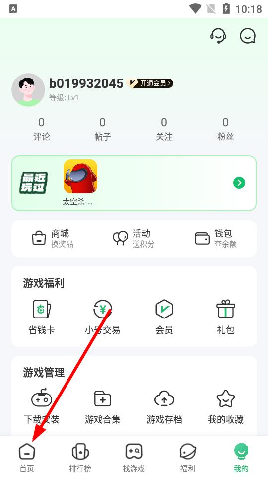 1、打开7723游戏盒APP,点击底部导航栏中的首页,进入首页界面。