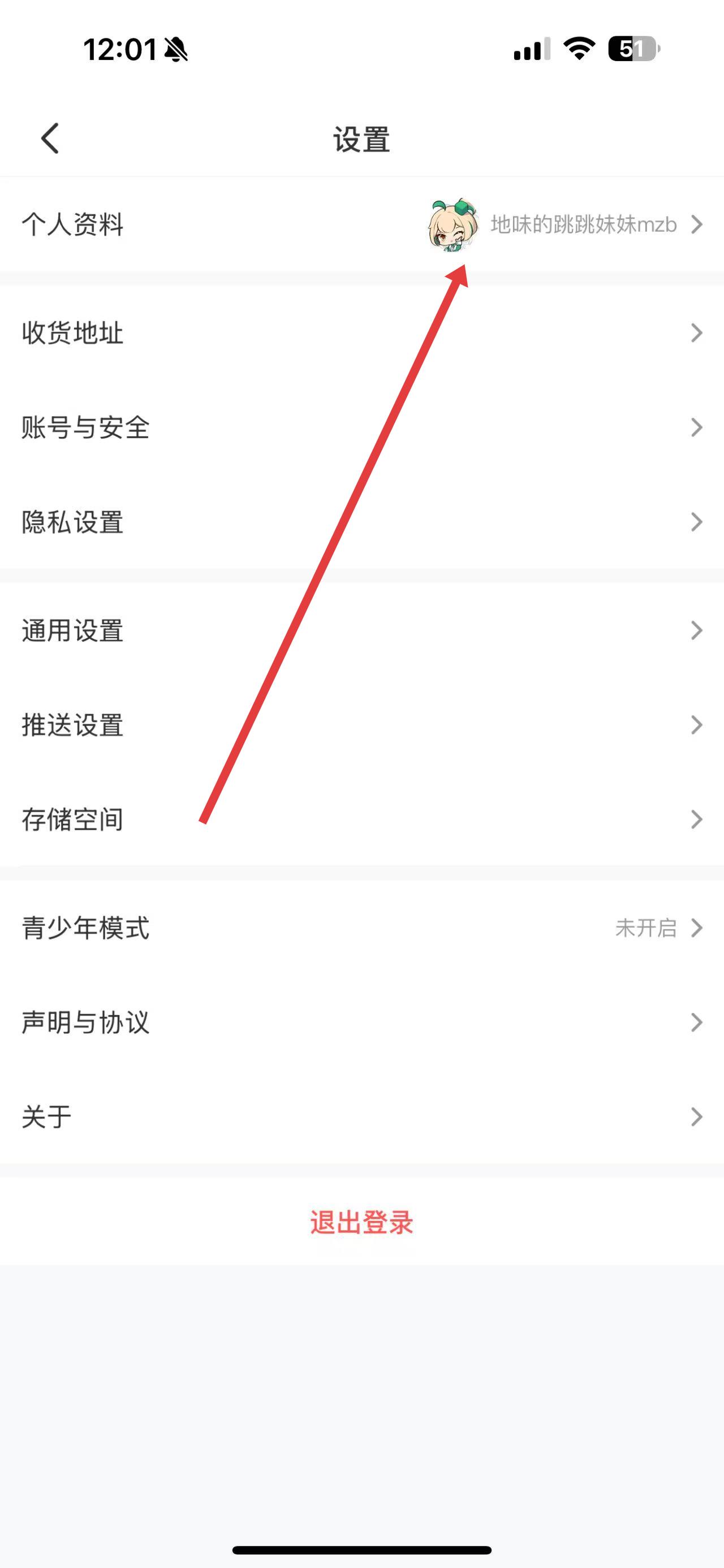 2、在设置页面,点击个人资料选项,进入个人资料编辑界面。