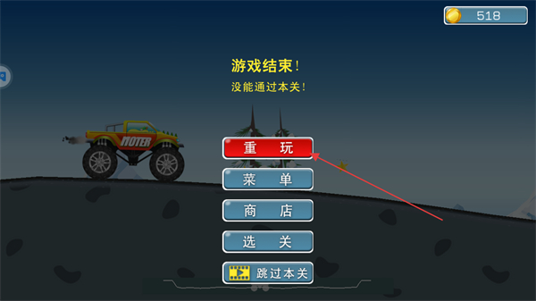 4、若挑战失败,出现游戏结束!没能通过本关!提示,点击重玩再次挑战。