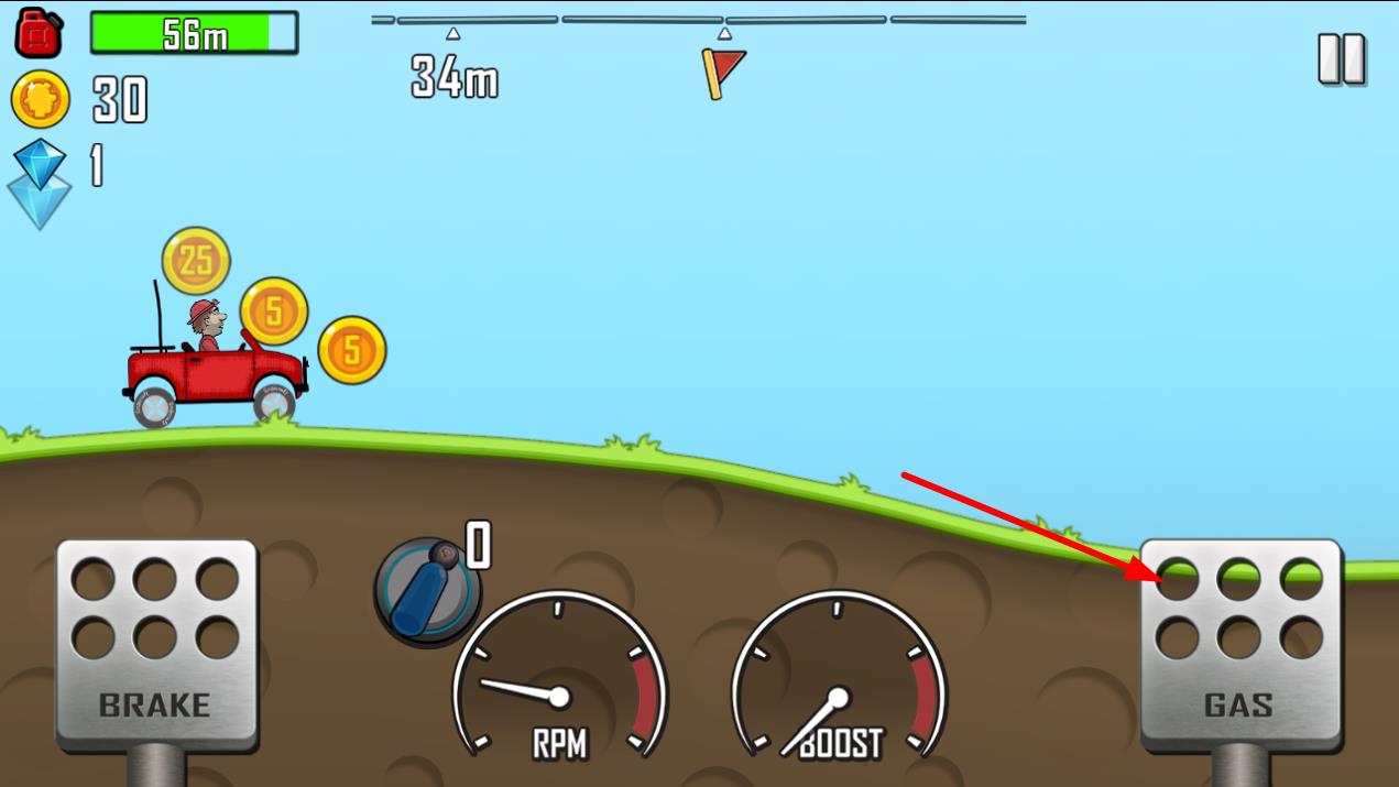 当你第一次玩这个游戏,因为刚进入游戏,没什么钱去升级物品,这时候不要一味的去踩油门,这样很容易翻车,而是要让自己的车保持在3的速度,这样你可以在属性游戏操作的同时,慢慢的积累金币,如果只想着往前冲,只会得不偿失。