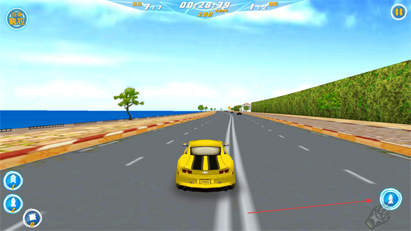 2、持续驾驶赛车,提升车速,沿赛道弯道行驶,保持行进节奏。
