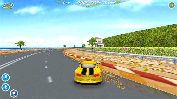 1、驾驶黄色赛车参赛,目标是获得前三名通关,沿赛道超越前方车辆推进。