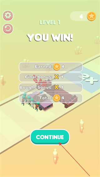 4、通关后点击CONTINUE继续挑战,获取星星奖励,提升队伍实力。