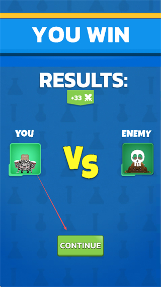 4、击败敌方后,点击CONTINUE继续挑战下一关。