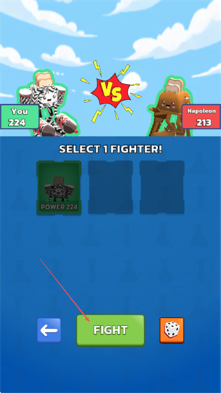 1、选择战力匹配的格斗士,点击FIGHT进入战斗。