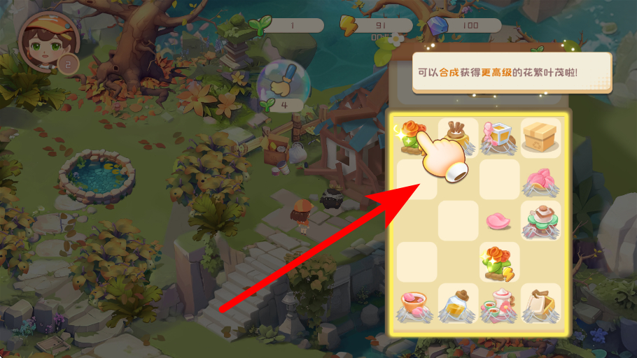 1、合成时在物品栏中,将可合成的物品进行操作,合成出更高级的物品,如合成获得更高级的花繁叶茂,为后续的经营生产等提供助力。