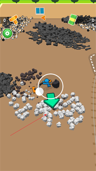 1、跟随箭头指引前往垃圾堆积处,操控角色使用工具收集垃圾。