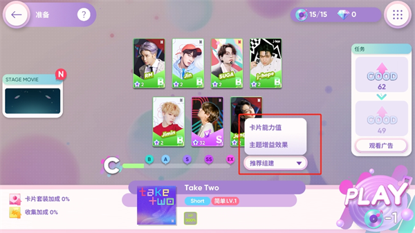 5、然后我们点击play就可以开始进行挑战啦,注意每一次音乐挑战都会消耗一次光盘数量哦,总共15次用完会按时间慢慢恢复。