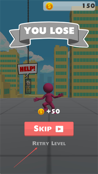 4、若战斗失败,可点击RetryLevel重新挑战关卡,继续尝试击败敌人。
