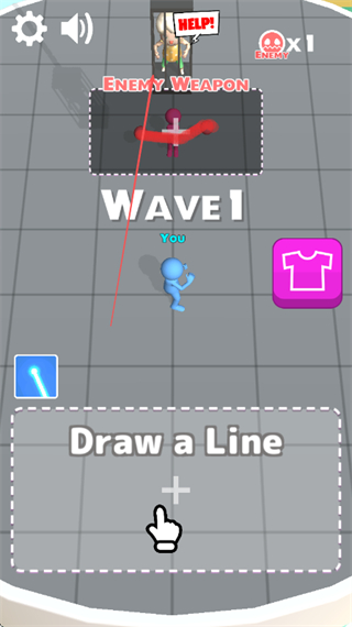 1、在DrawaLine区域绘制线条,生成武器如激光剑,准备攻击敌方。