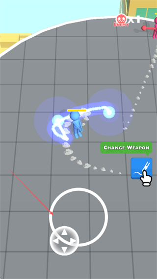 3、操控角色移动,利用绘制的武器攻击敌人,可点击ChangeWeapon切换武器类型,提升战斗效果。
