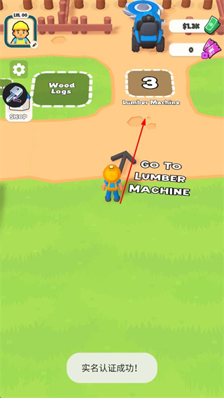 1、实名认证成功后,根据提示前往LumberMachine,界面显示当前等级00,拥有$1.3K金钱,可进入SHOP商店。