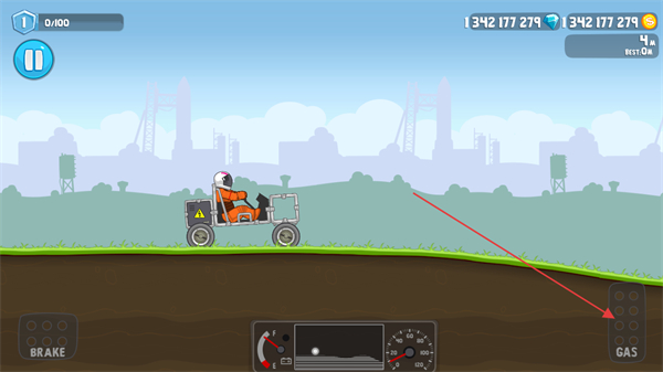 1、点击GAS按钮控制全地形车前进,在地形上行驶。